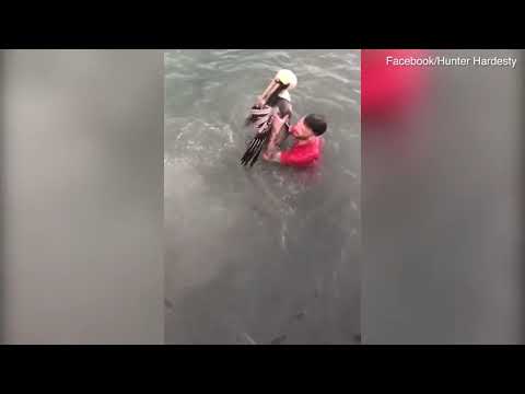 L’uomo vive a Riva, nel Maryland, e nel video che ha pubblicato su Facebook si mostra mentre attira l’attenzione del raro esemplare di pellicano offrendogli del cibo. Dopodichè, ha pensato bene di saltargli addosso, scoppiando a ridere per il suo gesto vergognoso. Il ragazzo è rimasto sopra al pellicano per qualche minuto, dopodichè l’animale ha iniziato a beccarlo, quindi il suo aguzzino lo ha liberato, mentre una donna minacciava di chiamare la polizia se non avesse lasciato subito la zona.