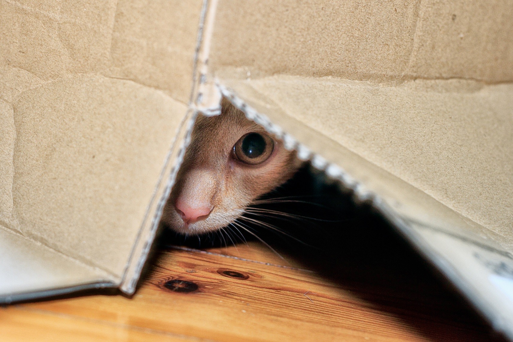 - Nascondere del cibo per casa: ad esempio, spostate le ciotole del cibo in un’altra stanza o parte della casa, oppure fate dei buchi in una scatola di cartone, mettete il cibo all’interno e chiudete il coperchio, in modo che Micio debba applicarsi per recuperare il cibo nascosto