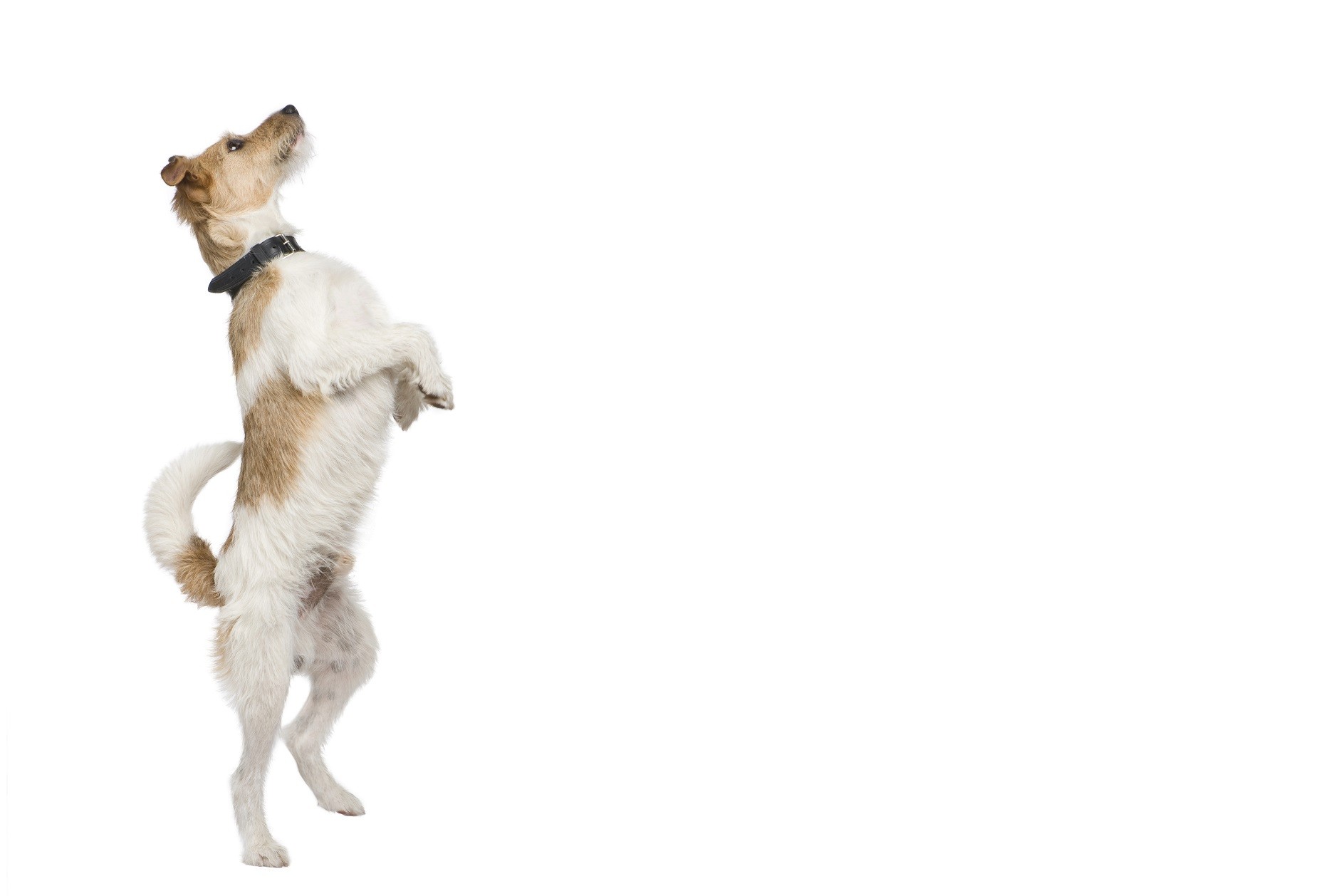 Mixed-Breed Dog with a terrier (2 years) in front of a white background