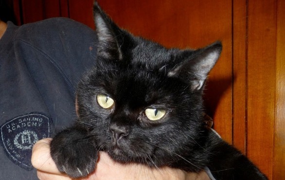 Oggi abbiamo ospite, nei nostri appelli di adozione, un bellissimo gatto nero di nome Punto. Punto è un gattone di circa due anni affetto da una forma di labirintite – in realtà quando ci è stato “donato” dalla persona che lo aveva trovato ci è stato riferito che aveva una brutta otite, che abbiamo cercato di curare come meglio potevamo, ma senza mai raggiungere una totale guarigione. Punto, che deve il suo nome al fatto di essere interamente nero eccezion fatta per un piccolo puntino bianco alla fine della coda, è ad oggi affetto da questa patologia a causa della quale cammina con la testina leggermente piegata da un lato. È un gatto per il resto sanissimo: mangia con appetito, gioca e dispensa coccole e fusa a chiunque gli faccia una carezza. L’unica cosa di cui necessita è essere periodicamente sottoposto ad un ciclo di baytril oto perché l’orecchio malato di tanto in tanto si infiamma.