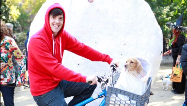 Un beagle in bicicletta con un lenzuolo, cos'è? Il costume per cani di Halloween che interpreta E.T. l'extra-terrestre