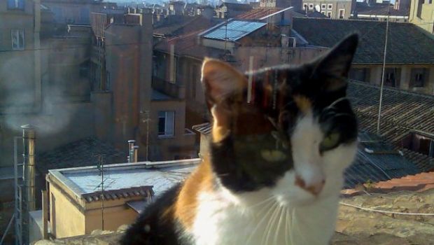 Eccola lì, alla finestra. Fuori. Sulle tegole. Come diavolo ci sei arrivata, mi chiedo. Che…