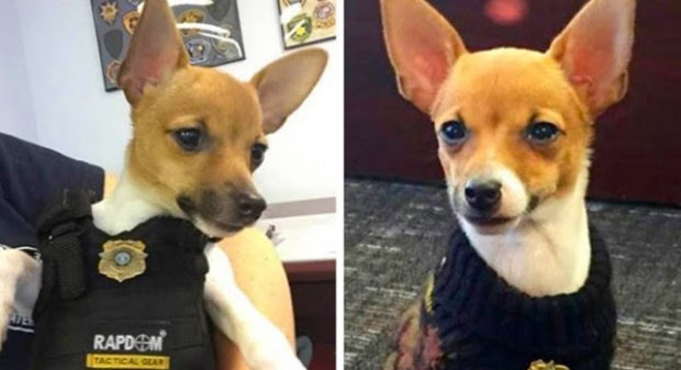 Spot è un cane poliziotto a tutti gli effetti ma con una particolarità: è veramente piccolo di statura!