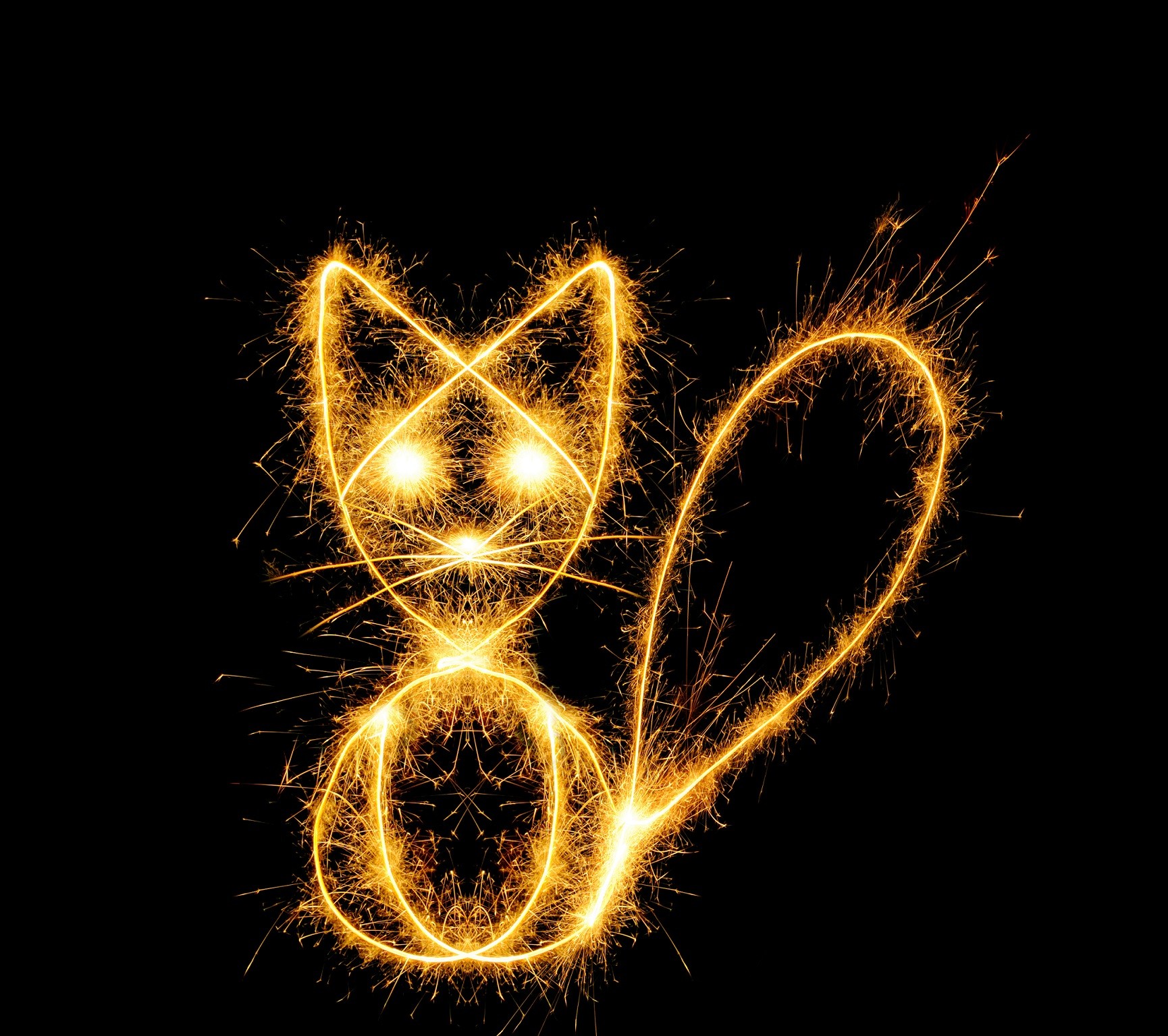 The cat from bengal fires. Abstract the image of an animal sparks of fire