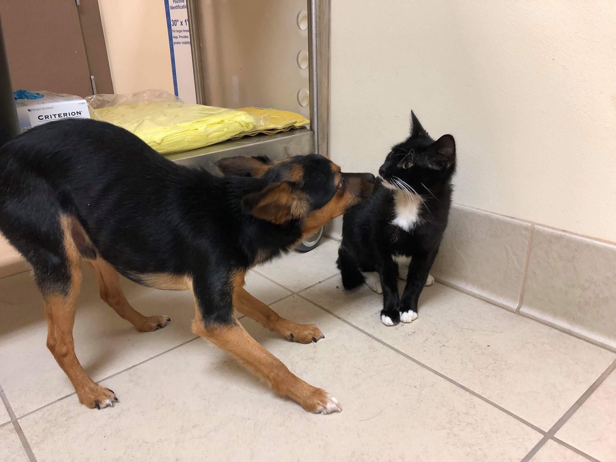 Oggi vogliamo raccontarvi una storia davvero tenerissima, che ha per protagonisti un cagnolino e un gattino nero, che sono stati avvistati poche settimane fa mentre si nascondevano vicino ai bagni dello stadio Hampton Soccer Park, a Hampton, in Virginia. Un passante ha fotografato i due piccolini, che si nascondevano spaventati, ed ha pubblicato la foto sul social network privato Nextdoor. Alcuni amanti degli animali si sono quindi recati allo stadio per cercare di aiutare i due piccoli in difficoltà, ma riuscire in questa impresa non è stato affatto semplice.