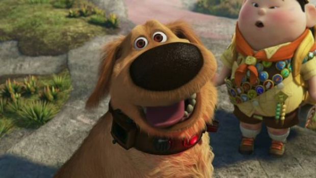 Spassoso il primo incontro tra Russell, il giovane boy scout che aiuta il vecchio Carl Fredricksen, e Dug: Russell fa la prova per vedere se il cane sia addestrato o meno. Gli ordina di sedere. E il cane si siede. Gli chiede la zampa e il peloso gliela dà. Gli dice “Parla” e il cande risponde: “Come va?” (la voce italiana è di Neri Marcorè). Del resto i cani sono obbedienti, no? Perché non avrebbe dovuto rispondere? Dug, comunque non solo sa parlare (in diverse lingue…), ma anche abbaiare e ululare come fanno i veri cani.