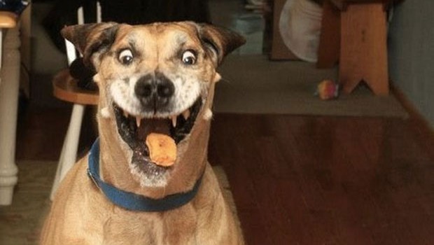 Una serie di simpatiche foto ci mostra le “facce” che fa un cane mentre mangia delle pepite di pollo.