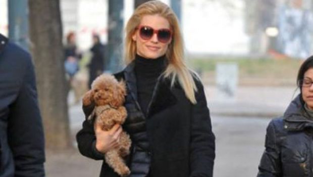 Michelle Hunziker a spasso con il suo cane, senza guinzaglio.