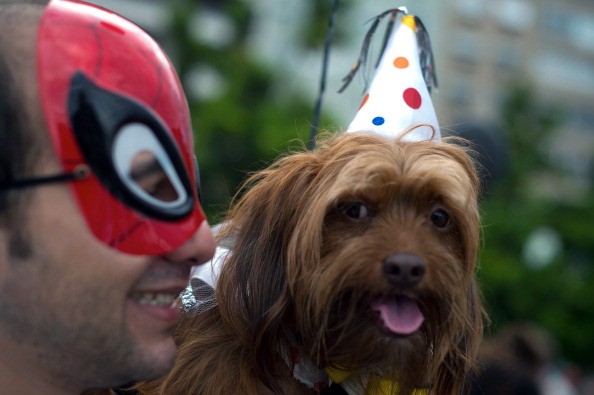 A dog wearing carnival costume takes part in the animals carnival, in Copacabana beach in Rio de Janeiro on February 03, 2013. AFP PHOTO / CHRISTOPHE SIMON (Photo credit should read CHRISTOPHE SIMON/AFP/Getty Images)