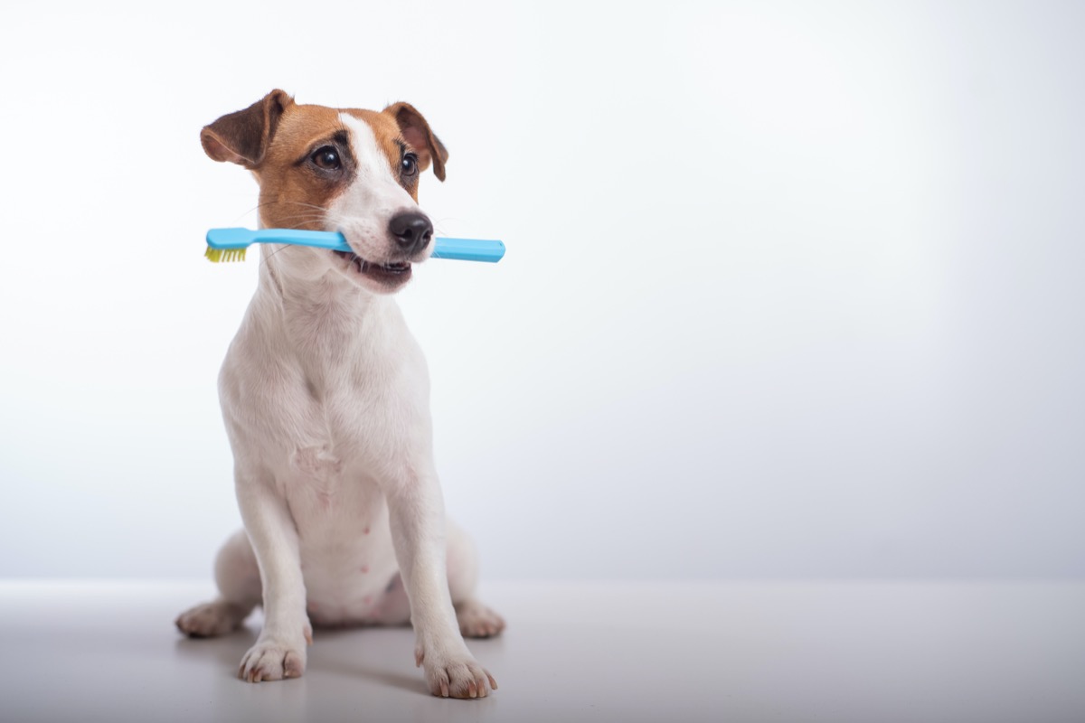 Il brodo di pollo, che possiamo anche sostituire con quello di manzo, è un ingrediente che forse non ci piacerà, ma renderà invece gradito a Fido il dentifricio. Se ci può consolare, le foglie di menta favoriranno un profumo meno strano del prodotto. E miglioreranno anche l’alito del nostro amico.