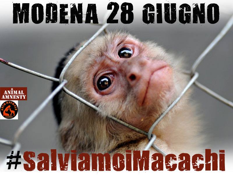 All’Università di Modena e Reggio Emilia, nello stabulario, sono prigionieri quindici macachi. Queste scimmie sono utilizzate per i soliti inutili test invasivi ma il loro futuro non è determinato da quanto resisteranno a queste torture quanto dall’iter di una nuova legge europea in materia di sperimentazione scientifica. Vista una nuova normativa che vieta l’allevamento degli animali nei laboratori, questi animali, invece che essere liberati per essere recuperati e, ove possibile, reintrodotti nel loro habitat, verranno abbattuti senza troppi scrupoli (si sa che gli animali per gli sperimentatori sono meri oggetti e, come tali, vengono “buttati” quando non più utilizzabili). L’associazione Animal Amnesty, però, ha deciso di far sentire la propria voce ed insieme ad AnimAnimale, LAV , Oipa , Animal Defenders, ZOE associazione, COORDINAMENTO ANTISPECISTA, E.N.P.A. Azione Animalista, AANIMO, Animalisti Italiani, Animal Liberation, Comitato O.S.A. e Leal Lega Antivivisezionista organizzando un corteo per le strade della cittadina Emiliana per urlare a gran voce a favore della liberazione dei quindici macachi.