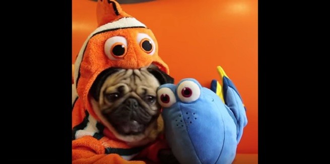 Doug the Pug – Torniamo ancora una volta sul canale YouTube di Doug the Pug perché è arrivato un nuovo, divertentissimo video. Questa volta il nostro Carlino interpreta il ruolo del pesciolino Nemo nel film Disney di prossima uscita Alla Ricerca di Dory (Finding Dory se preferite il titolo in inglese), diretto sequel di Alla Ricerca di Nemo. Il video è piuttosto corto, ma vediamo il Carlino vestito con un perfetto costume di Nemo girare per un negozio di acquari alla disperata ricerca di Dory. Trova prima una statuetta di Dory, la annusa perplesso, ma poi decide di continuare la sua ricerca.