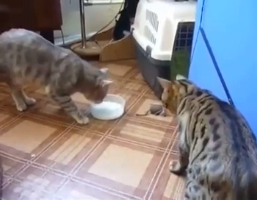 Il video che vi segnaliamo oggi vede protagonisti due gatti davvero simpatici, due gattini che – a quanto pare – non sanno bene che fare con la ciotola di pappa che la loro padroncina gli ha lasciato sul pavimento. In un primo momento infatti, i nostri due amici si contendono la ciotola, sfilandola reciprocamente da sotto i baffi, ma dopo un attento esame, i due sembrano essere disposti a cedere il cibo. Magari la pappa non è esattamente di loro gradimento? O forse si tratta di pura generosità? A voi l’ardua sentenza!