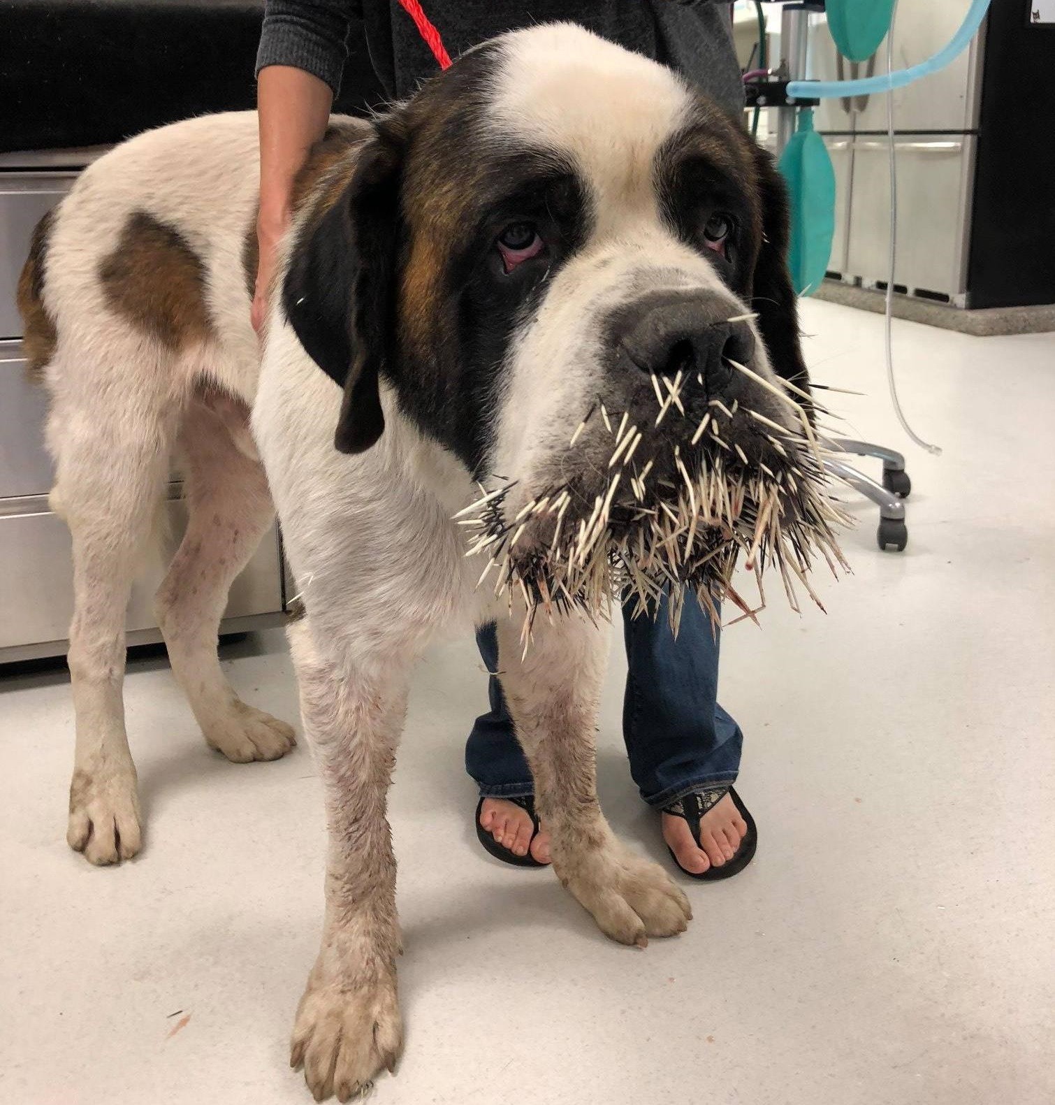 Ruckus è un San Bernardo decisamente troppo curioso! Questo enorme cucciolo ha infatti recentemente vissuto un’avventura dolorosa e bizzarra! Mentre si trovava a passeggio, il “piccolo” ha visto un animale dall’aspetto stranissimo, ovvero un porcospino. Come resistere alla tentazione di avvicinarsi e dare un’annusata? Ebbene, il porcospino non sembra aver gradito le attenzioni del cagnolone, e per tutta risposta gli ha quindi “lanciato” un arsenale di aculei appuntiti proprio sulla faccia.