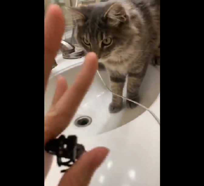 Quello che potete vedere nel video qui sotto, in realtà, non è altro che un replay di quanto accaduto poco tempo prima, quando la ragazza aveva perso il suo anello, caduto appunto nel tubo di scarico del lavandino, ed era rimasta sbigottita nel vedere il suo micio che recuperava l’oggetto con tanta agilità.