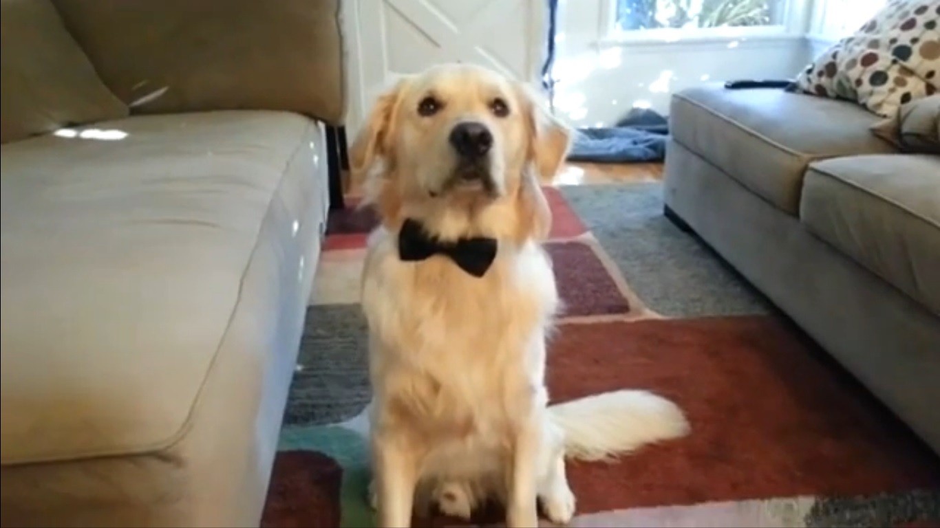 Volete conoscere un cane semplicemente elegantissimo? Il protagonista del video che vi segnaliamo oggi è un golden retriever addestrato in modo impeccabile, un cucciolone biondo con tanto di papillon che, come potete vedere con i vostri occhi, non solo rimane seduto composto anche di fronte ai suoi snack preferiti, ma prende anche al volo i suoi premi e da la zampa senza perdere un grammo della sua eleganza. Insomma, questo cucciolotto è un vero e proprio “gentleman” a quattro zampe (un gentlecan praticamente!)! Date un’occhiata al video e diteci se non è un cane semplicemente adorabile!