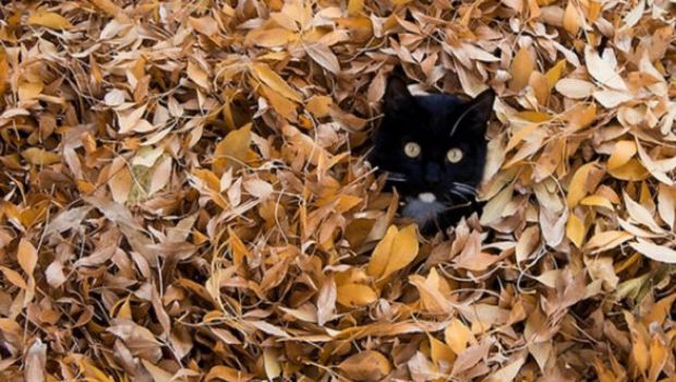 I cumuli di foglie secche sono un ottimo nascondiglio per i gatti