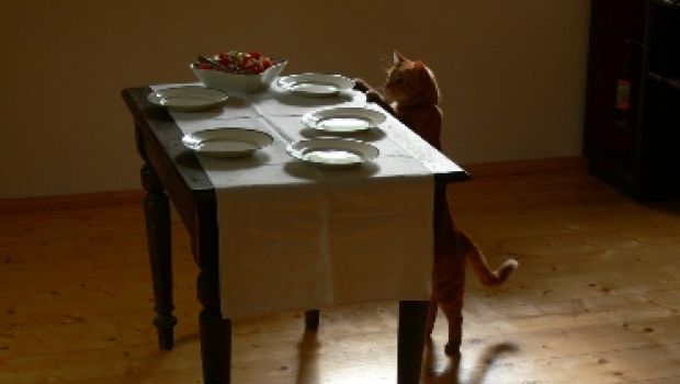 Tornata a casa dal lavoro, non pensavo ad altro che al gigantesco gattone rosso, mio per un paio di giorni. Ho aperto la porta con attenzione perché, naturalmente, sapevo che un gatto girovago come lui avrebbe colto l’occasione per scappare. Fatto appello a tutta la mia esperienza, ho evitato la fuga con complicati movimenti da contorsionista, bloccando lo specchio della porta.
