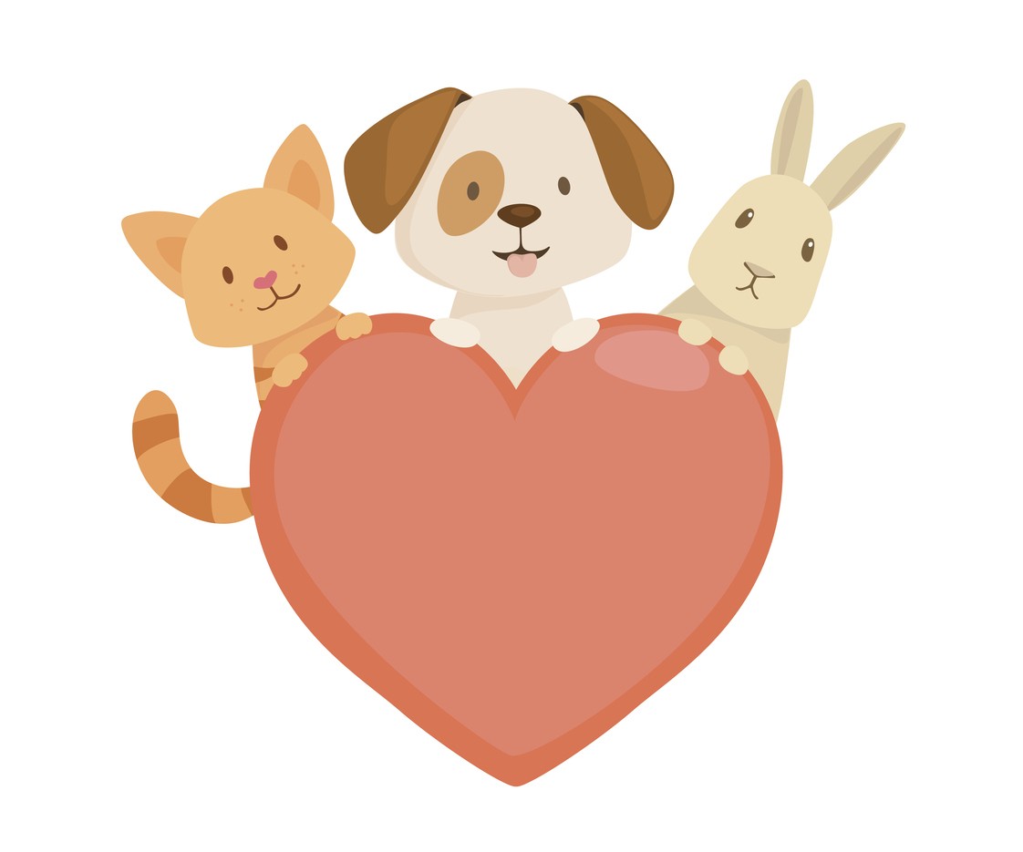 Heart emblem with cat,dog and rabbit characters. vector illustration