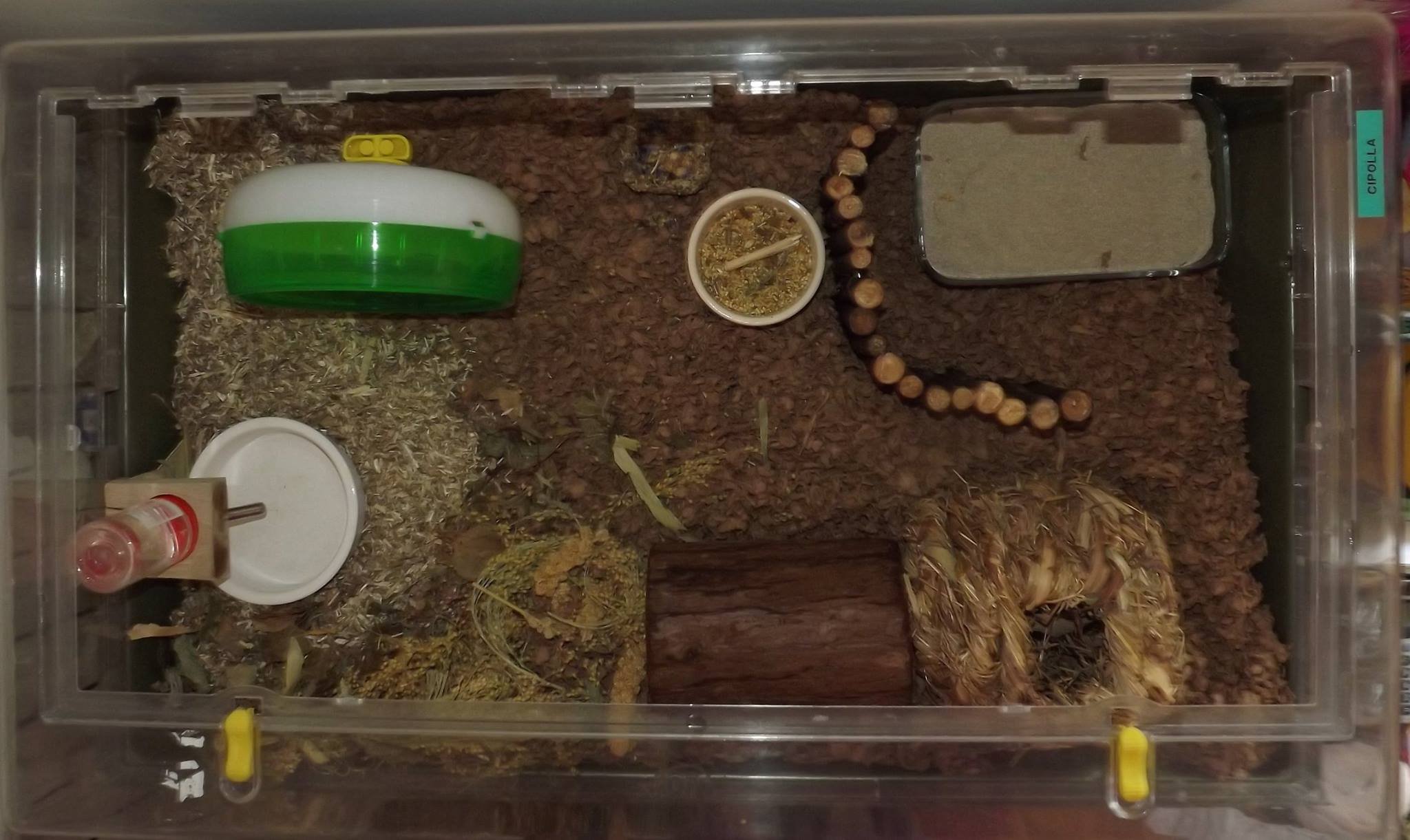 Detto questo, il primo punto è mettere un buono strato di lettiera, almeno 10 cm, per permettere al criceto di scavare. Se ben ci riflettete non tutte le lettiere sono ben scavabili e restano “fisse” se viene fatto un tunnel sotterraneo. Come lettiera si consiglia di solito o canapa e fieno, o canapa e cellulosa naturale. L’importante è non usare materiali “che franano” o lettiere tendenzialmente polverose come i truciolati non depolverizzati completamente.