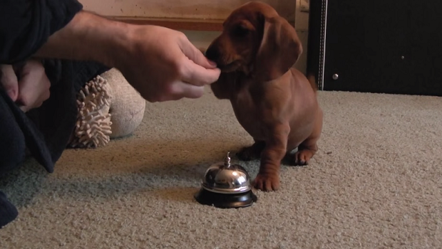 Kirk, questo il nome del papà bipede di Maddie, ha avuto un’idea quantomeno brillante per capire quando Maddie ha bisogno di uscire. In pratica vuole insegnarle a suonare il campanello (uno di quei campanelli da reception dell’hotel) quando sente la necessità di uscire. Ovviamente il metodo migliore per addestrare un cane è quello di “prenderlo per la gola” grazie ad appositi biscottini da utilizzare come premio quando risponde positivamente al comando. Ora, Maddie ha capito che dalla mano del suo “papà” arrivano dei biscotti ma ancora non ha capito che il biscotto è collegato al suono del campanello ma quello lo imparerà presto. Sono piuttosto curioso di sapere come farà ad insegnarle il collegamento tra lo stimolo della vescica e il fatto che debba suonare il campanello!