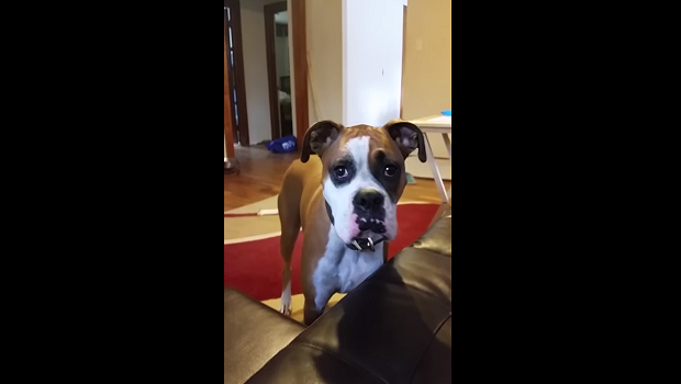 Questo cucciolone di boxer sembra essere estremamente impegnato in una battaglia psicologica con la sua padrona. E’ arrivato un divano nuovo in casa e la “mamma” ha deciso che lui non potrà salirci. Lui, ovviamente, cerca di convincerla, fa gli occhi dolci, si fa vedere tutto “coccoloso” (io, tra l’altro, non avrei resistito nemmeno agli occhioni languidi…), appoggia addirittura su la zampa per farle vedere che l’abbinamento cromatico è meravigliosamente perfetto ma lei niente, continua imperterrita a non ascoltarlo. Vi chiederete come facciamo a sapere che il divano è nuovo. Avete mai visto un divano così pulito e perfetto quando c’è un cane in casa?