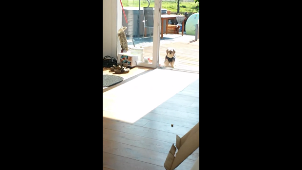 Questo cane non entra in casa. Si può fare molto per convincerlo ma lui niente, non varca la porta-finestra. Sembra non esserci una ragione razionale. I suoi padroni lo chiamano, lo incitano, lo spronano ma lui niente, non ne vuole sapere. Provano anche a convincerlo usando il trucco più vecchio del mondo: il biscottino! Lui lo guarda, lo brama ma non cambia assolutamente idea e rimane imperterrito fuori dall’uscio.
