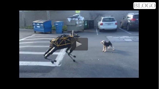 Un robot contro un cane in carne e ossa, Alex, che sembra non temere affatto quel marchingegno fatto di circuiti e di tecnologia altamente avanzata. Nel video Alex è impegnato tutto il tempo ad abbaiare contro il suo curioso rivale, all’interno di un parcheggio: sicuramente avrebbero potuto scegliere location migliore, anche perché la vista dei cassonetti e delle auto parcheggiate non è un granché, ma sorvoliamo.