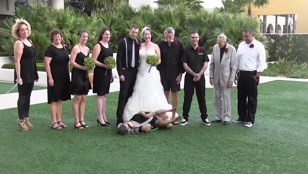 Come a dire che i cani sono esseri naturali e se ne fregano se c’è un’etichetta da rispettare. Loro sono spontanei e noi dovremmo prenderli ad esempio. Il cane Jethro è uno di loro! Jethro è un cagnolone che ha un compito davvero speciale: è l’incaricato ufficiale per portare le fedi agli sposi, direttamente sull’altare. Ovviamente Jethro è stato vestito per l’occasione ma, una volta sul prato, è scattata la sua naturalezza e poco importa se l’occasione era importante…lui voleva solo rotolarsi nell’erba!