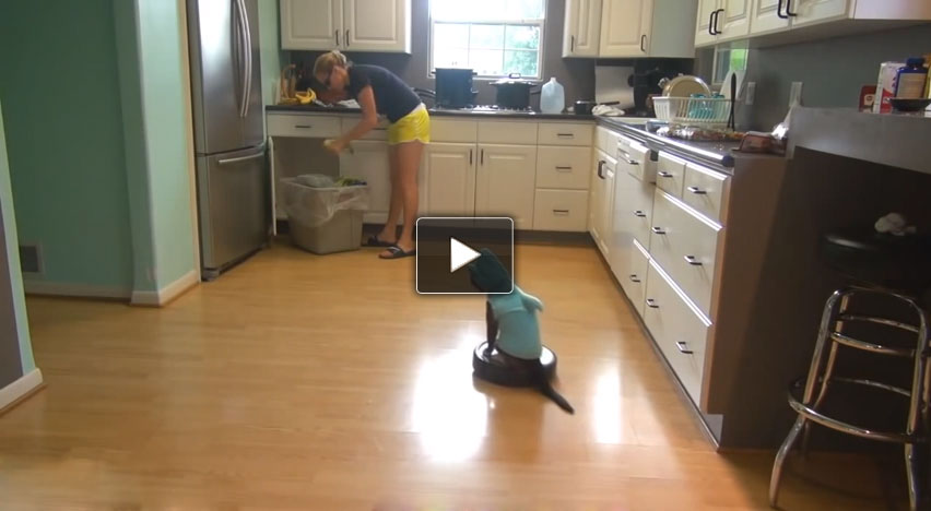 Nel video del gatto che cavalca l’aspirapolvere c’è da notare anche un’altra cosa: a un certo punto il micio scende dalla sua navicella spaziale e la sua amica umana spegne il robot. Allora – e solo allora! – entra in scena il cagnolone di casa, tutto scodinzolante e con un bel sorriso stampato sul muso: finalmente quel coso rumoroso ha smesso di muoversi!