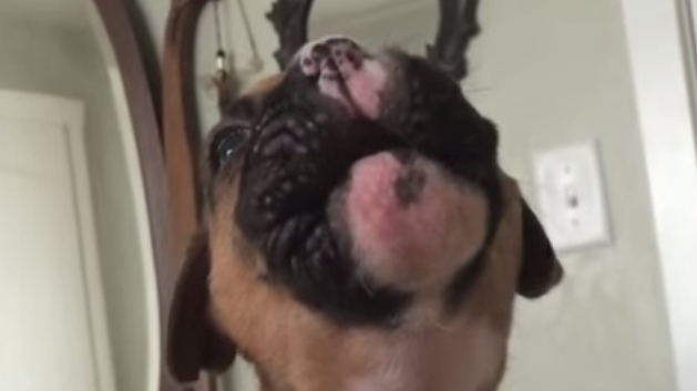 Se potete, quindi, riparatevi in casa al calduccio e magari fate come questo meraviglioso cucciolo di boxer di poche settimane. Lui se ne sta comodo comodo sul petto della sua mamma. Un grosso sbadiglio e poi la mamma fa come si fa con i bambini piccoli: prova a fargli dire le sue prime parole! Ovviamente non può fargli dire “mamma” ma qualcosa più nelle sue corde. Questo piccolo cucciolo vuole così tanto a ululare come un grosso cane che ce la mette davvero tutta. Per ora, però, non va ancora come previsto e tutto di riduce in uno strano mugolio ma siamo sicuri che da grande saprà far sentire il suo vocione forte e chiaro!