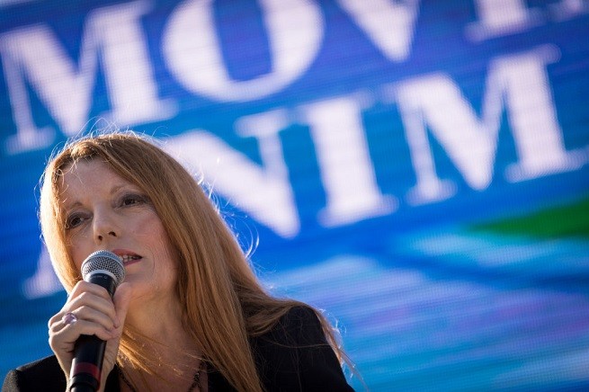 Michela Vittoria Brambilla during an Animal Movement Demonstration in Rome, Italy, on July 08. The animal movement ,founded by Michela Vittoria Brambilla last May 20 ,fell fot the first time in the piazza In Rome to ask for' justice for all' and to fight against the ill-treatment of animals .During the demonstration, departed from the Colosseum and ended in Piazza Venezia with several interventions from the stage, the president and founder Michela Vittoria Brambilla said: "We no longer want to delgate the defenseof animals and support to the people who live with their four - leggend frieds,for this reason we deided to commit ourselvesin the first personwith this movement. (Photo by Andrea Ronchini/NurPhoto via Getty Images)