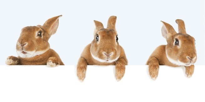 Three Rabbits holding a white banner