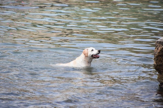dog swimming in the sea
