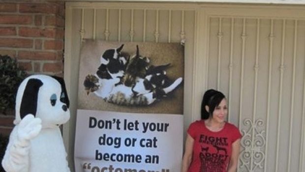 In una delle sue tante campagne di sensibilizzazione sull’argomento sterilizzazione, la PETA aveva usato come testimonial Nadya Sulema. Sulema è conosciuta ai più come Octomom, per aver dato alla luce otto bambini contemporaneamente ed essere così mamma di quattordici bambini in totale. L’evento mediatico che ha ottenuto l’ha spinta a sostenere la causa del gruppo animalista con lo slogan: ” Non lasciate che i vostri pets diventino octomom”.
