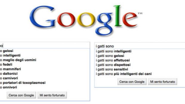 Secondo i suggerimenti di Google di questa mattina i cani sono prima di tutto gelosi, poi intelligenti e meglio degli uomini, sono fedeli, mammiferi, daltonici, carnivori, portatori di toxoplasmosi e, infine, onnivori. Un po’ meglio va ai gatti che prima di tutto sono intelligenti, poi gelosi, affettuosi, dispettosi, sensitivi e, quale vittoria finale, più intelligenti dei cani.