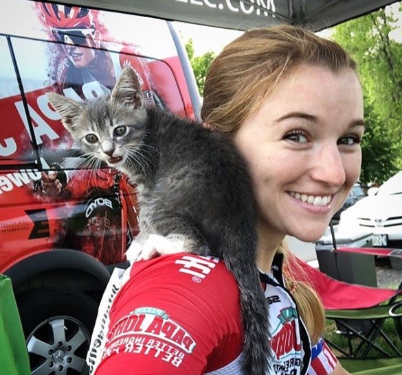 fa sapere la donna, che in quel momento era impegnata in una corsa in bici. La ragazza aveva appena finito la gara, quando ha notato i motociclisti insieme alla gattina. Si è quindi avvicinata per controllare cosa stesse accadendo, e non appena la micetta l’ha vista, le si è arrampicata sulla spalla, per non scendere più.