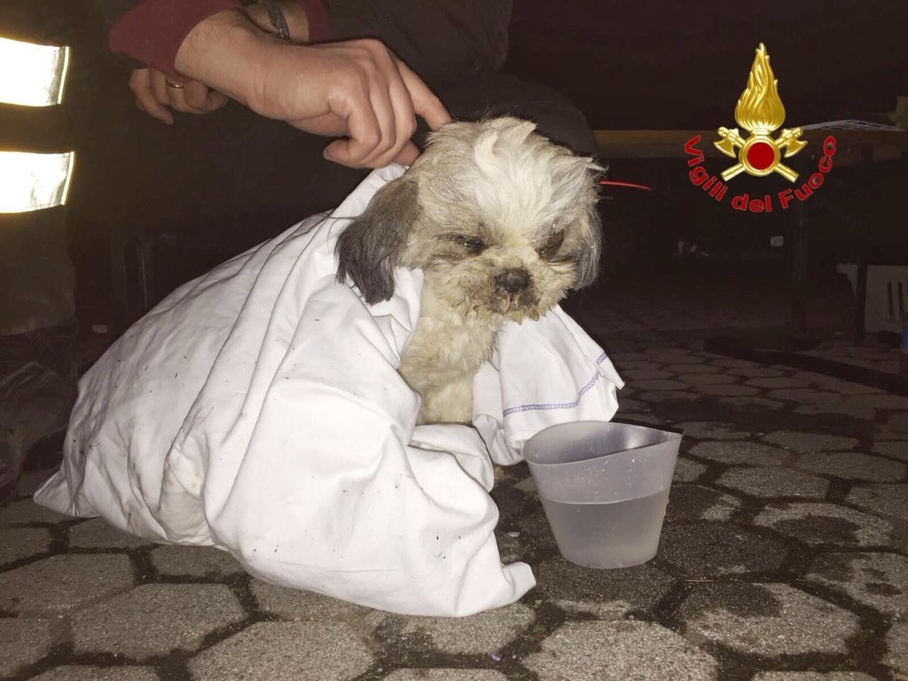 I vigili del fuoco sono arrivati nel punto in cui si trovava dopo aver sentito dei rumori che provenivano da un’apertura presente nelle macerie. Il cane è stato subito pulito: era pieno di polvere. Gli è stato dato da bere direttamente da una bottiglietta di acqua, mentre i soccorritori lo coccolavano avvolto in un telo termico. Lo ha tenuto in braccio tutto il tempo un pompiere, mentre lui tremava sia per il freddo sia per la paura.
