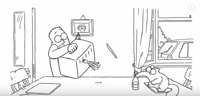 Simon’s Cat – Ancora un esilarante video dal mondo di Simon’s Cat: come (non) fare entrare il gatto nel trasportino. Simon deve far entrare il suo micio nel trasportino: ha chiaramente un appuntamento da qualche parte col gatto (veterinario? Toelettatore?), controlla continuamente l’ora, ma il momento è giunto. Bisogna infilare il gatto nel trasportino. Gatto che, ovviamente, non ha nessuna intenzione al mondo di entrarci. Simon inizia bene: lo distrae col cibo, lo accarezza, ma qui il piano va a farsi friggere. Quando lo acchiappa per metterlo dentro, lo fa esitando, dando tutto il tempo al mondo al gatto di mettere in atto la sua controffensiva… la quale comprende lancio del salino, lancio di forchetta e coltello (in questo caso ricordatevi che il trasportino funziona bene da scudo), salto il testa a Simon, zampate tirare contro il povero proprietario…