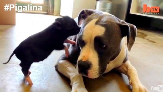Questa è la storia di Pigalina e Levi. Pigalina è un maialino nano e Levi è un pitbull. Entrambi hanno una storia triste alle spalle ma insieme si sono “trovati” e sono diventati migliori amici. Entrambi indesiderati, sono finiti al PIGS Animal Sanctuary in Virginia, Stati Uniti. Il piccolo maialino ha provato un’immediata simpatia per il cagnolone e questo strano amore è stato ricambiato immediatamente! Quando Pigalina è stata respinta dal resto della sua cucciolata, è stata portata in cura al Santuario di Melissa Susko.