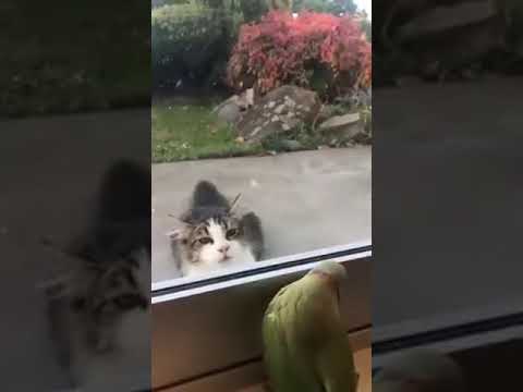Ecco un simpatico pappagallo che gioca a nascondino con un gatto!